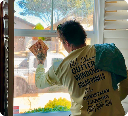Includes removing & reinstalling screens, cleaning exterior & interior windows, bug screens, tracks, frames, sills, indoor ceiling fan blades, bathroom mirrors, and garage door windows.